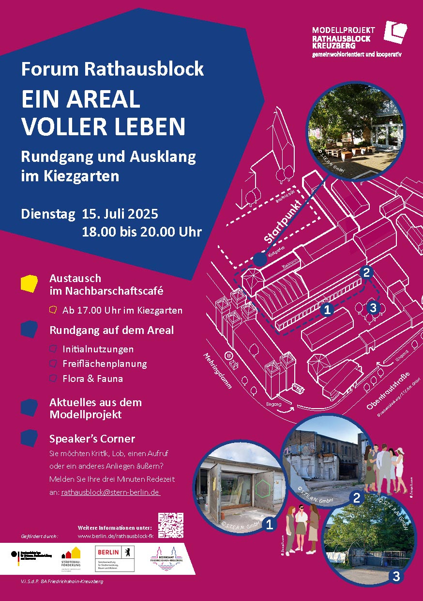 Weitere Informationen zum Forum Rathausblock finden Sie hier. Die Dokumentationen des letzten Forums am 18. März zu „Wohnen im Rathausblock – Verfahren, Strategien und Impulse“ und allen anderen vergangenen Forumsveranstaltungen ist hier veröffentlicht.